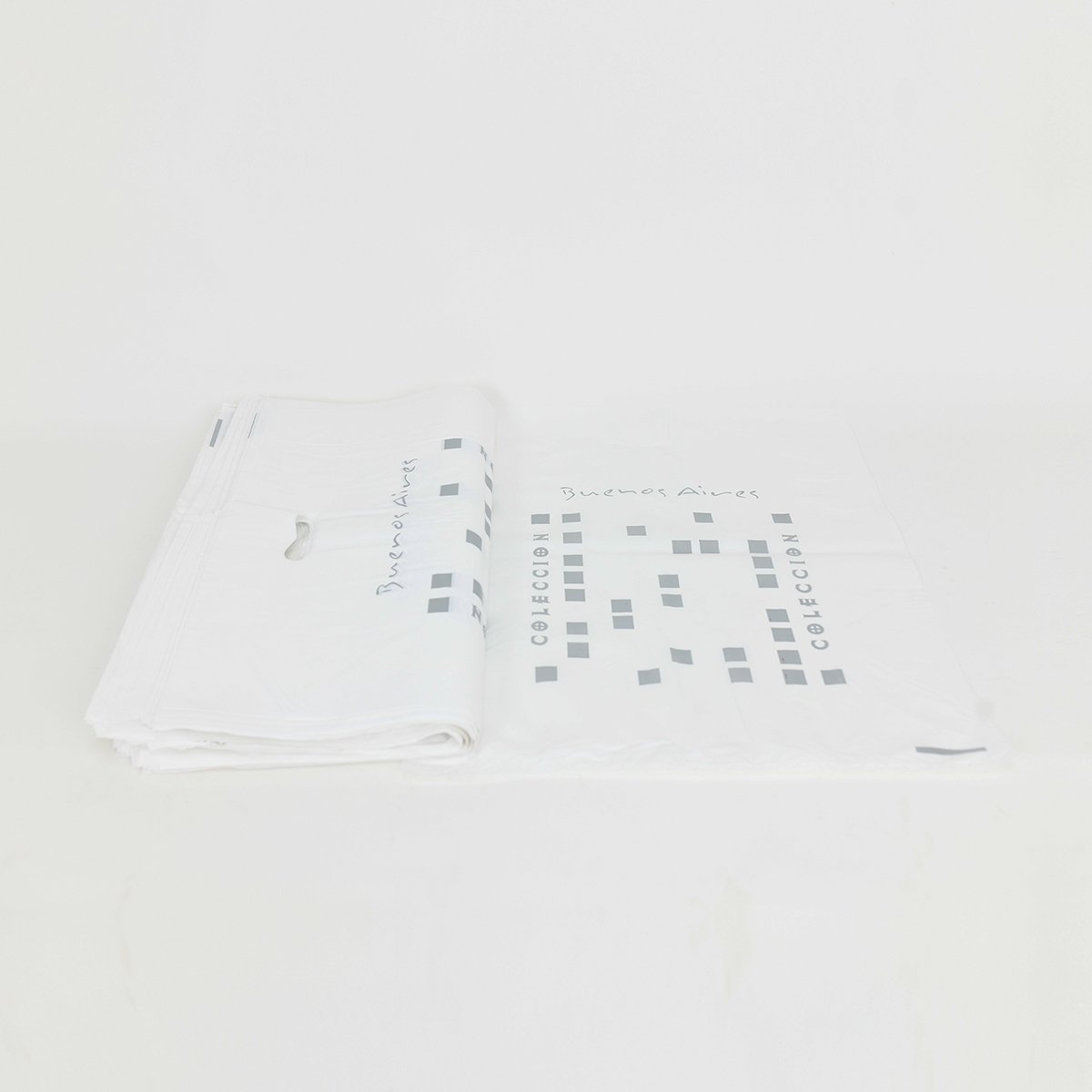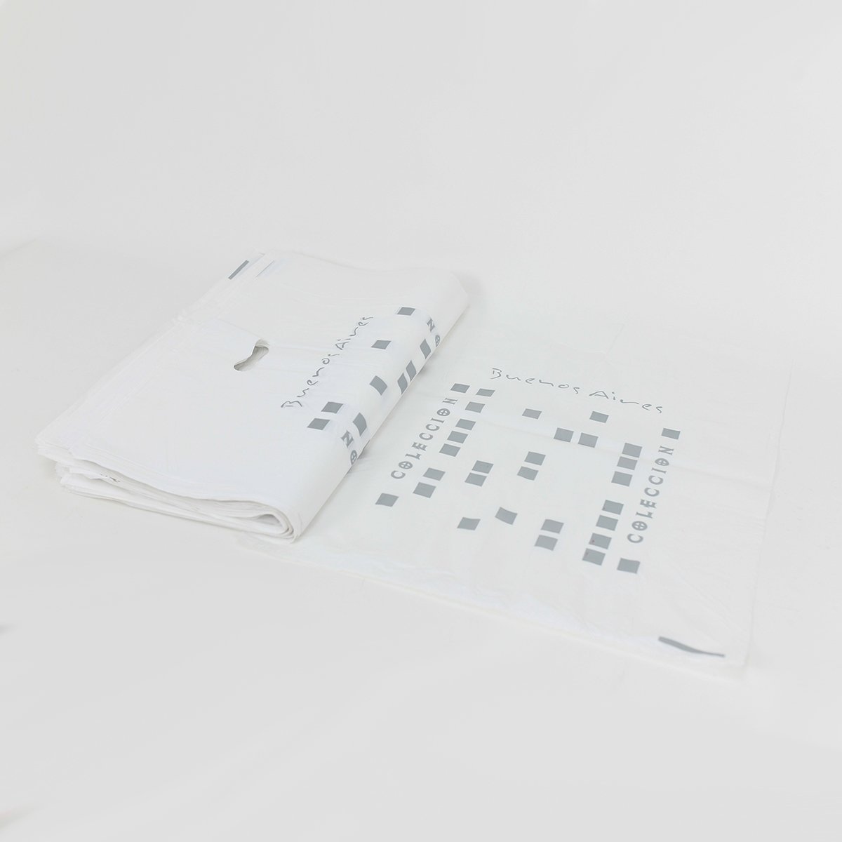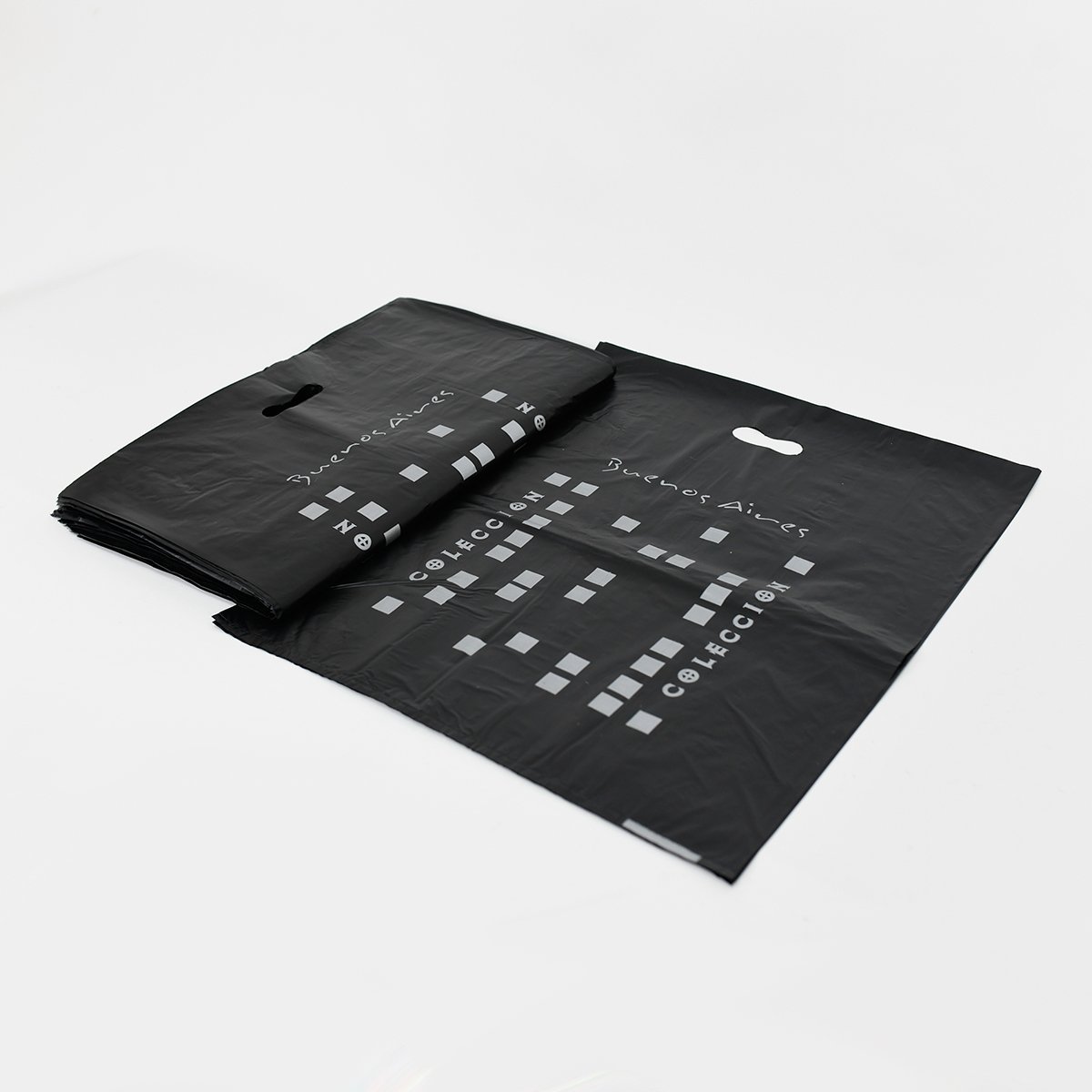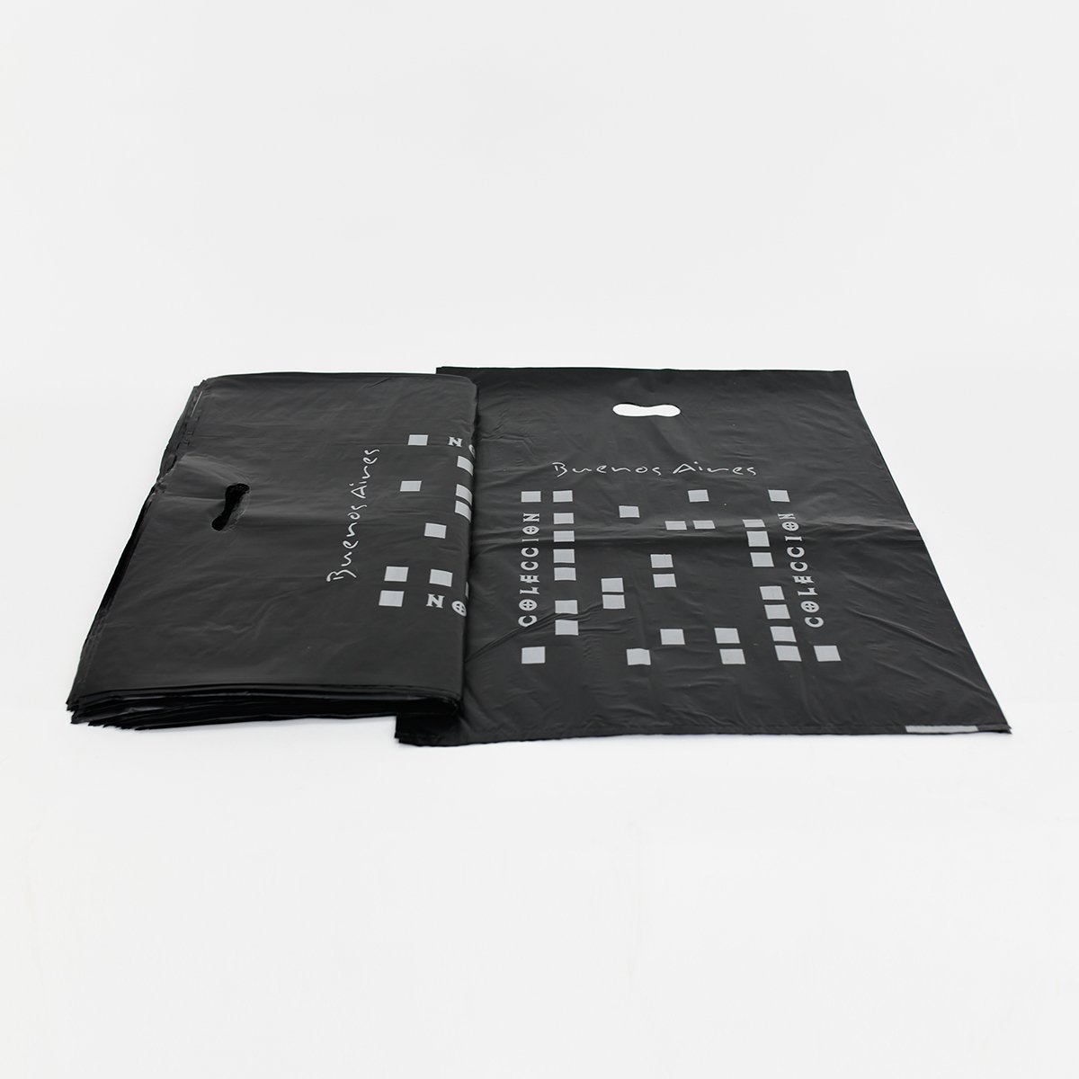 Bolsa de polietileno resistente de alta densidad y material virgen, ideal para entrega de productos, regalos o merchandising. Disponible en varios diseños y colores.
