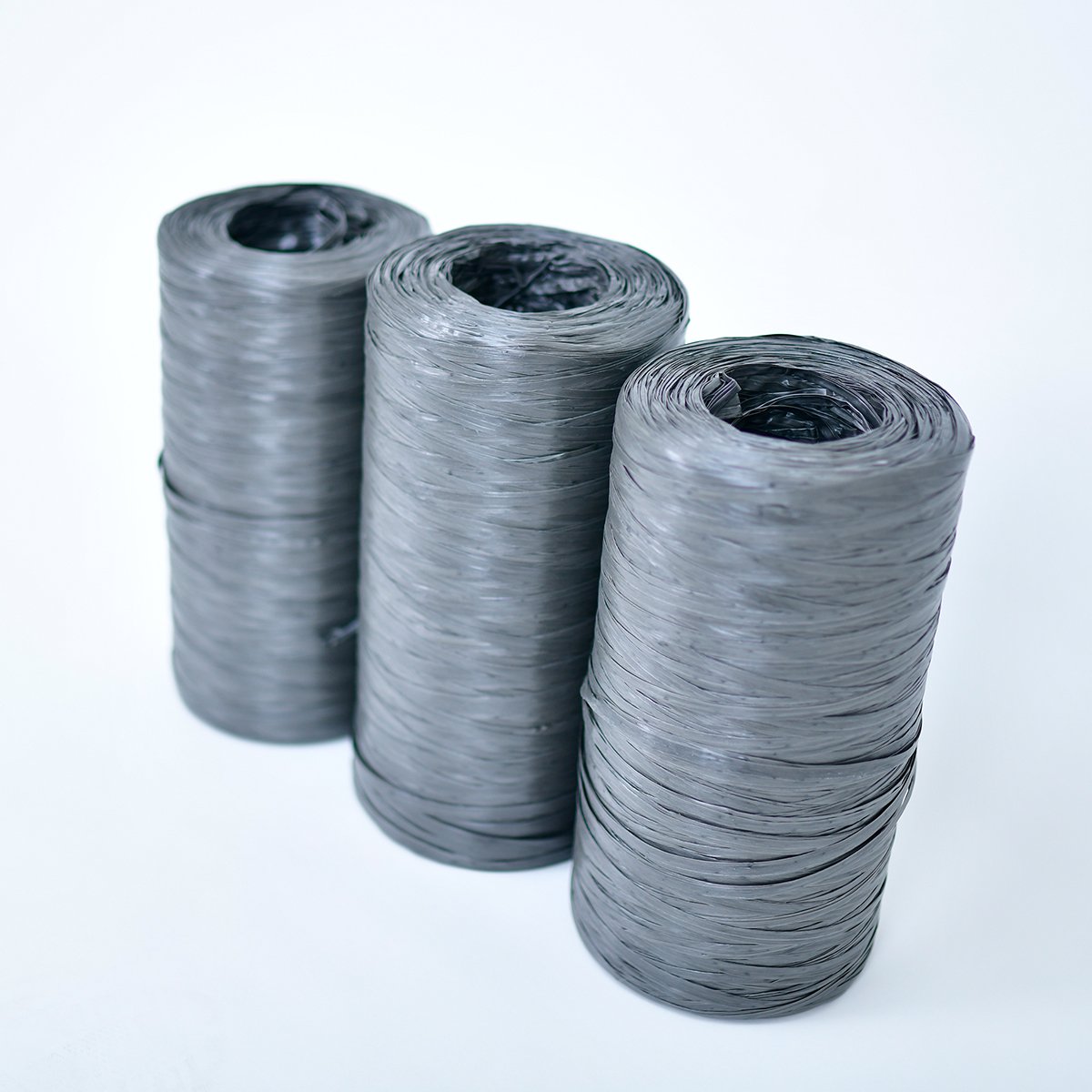 Hilo plástico negro/gris reciclado de polipropileno, para embalaje. Bobinas de 2,300 kgs apróx.